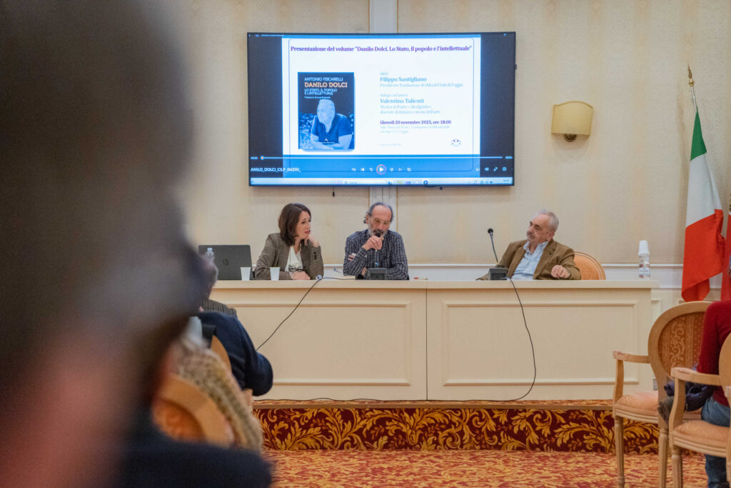 Giovedì 20 novembre 2025, nella sala “Rosa del Vento” della Fondazione dei Monti Uniti di Foggia, si è svolta la presentazione del volume Danilo Dolci. Lo Stato, il popolo e l’intellettuale di Antonio Fiscarelli (Castelvecchi, 2025). Un appuntamento che ha permesso di riscoprire la figura complessa e straordinaria di Dolci, spesso definito il “Gandhi della Sicilia”, tra i protagonisti più incisivi dell’impegno civile italiano del Novecento.