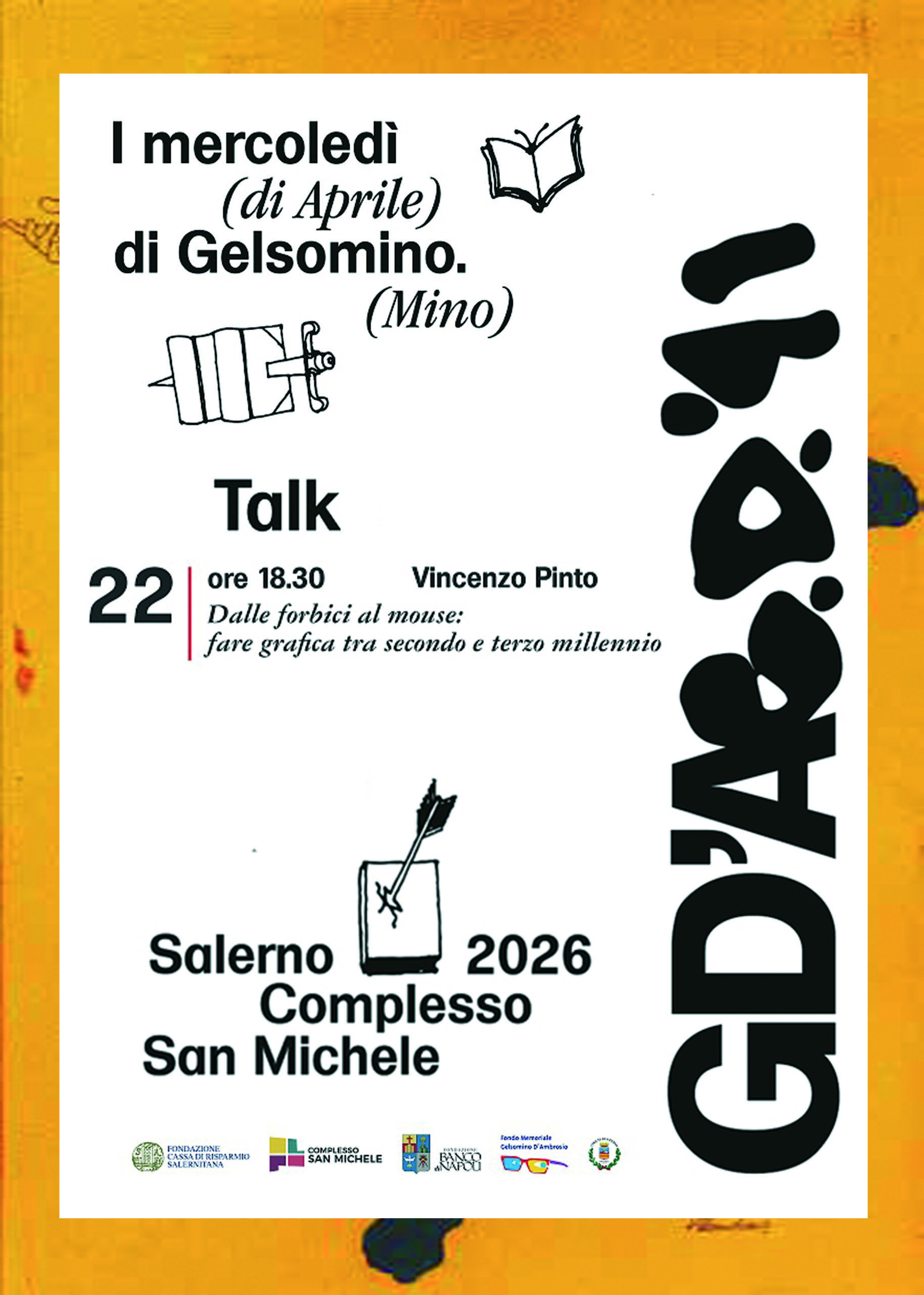 Mercoledì 22 aprile 2026, alle ore 18:30, il Complesso San Michele di Salerno ospiterà il talk “Dalle forbici al mouse: fare grafica tra secondo e terzo millennio”, a cura di Vincenzo Pinto.