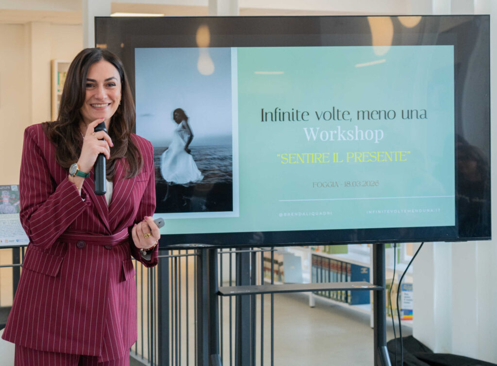 Protagonista dell’incontro è stata l’autrice e speaker Brenda Libera Li Quadri, che ha condotto il workshop motivazionale “Sentire il presente”, coinvolgendo attivamente studenti e partecipanti in un percorso di riflessione su consapevolezza, scelte e leadership personale.